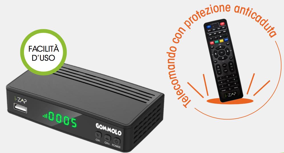 L’ iZAP GOMMOLO è un decoder digitale terrestre semplice, affidabile, che dà accesso alla programmazione televisiva gratuita