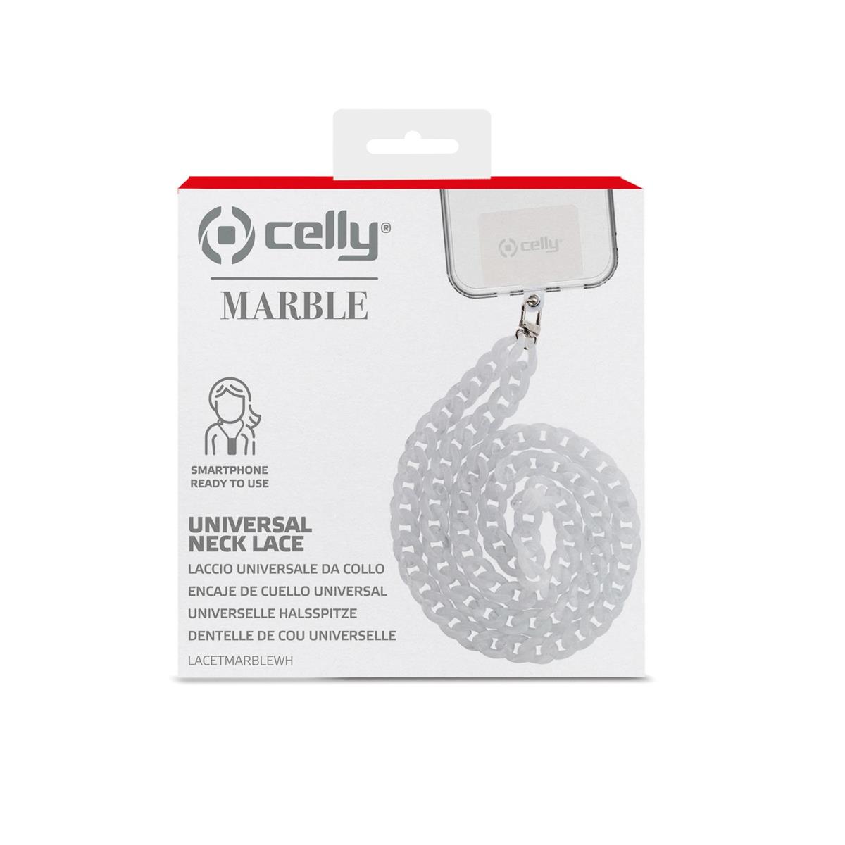 Lacet Marble è una catena da collo con finitura effetto marmo, pratica e moderna e compatibile con tutti i telefoni.