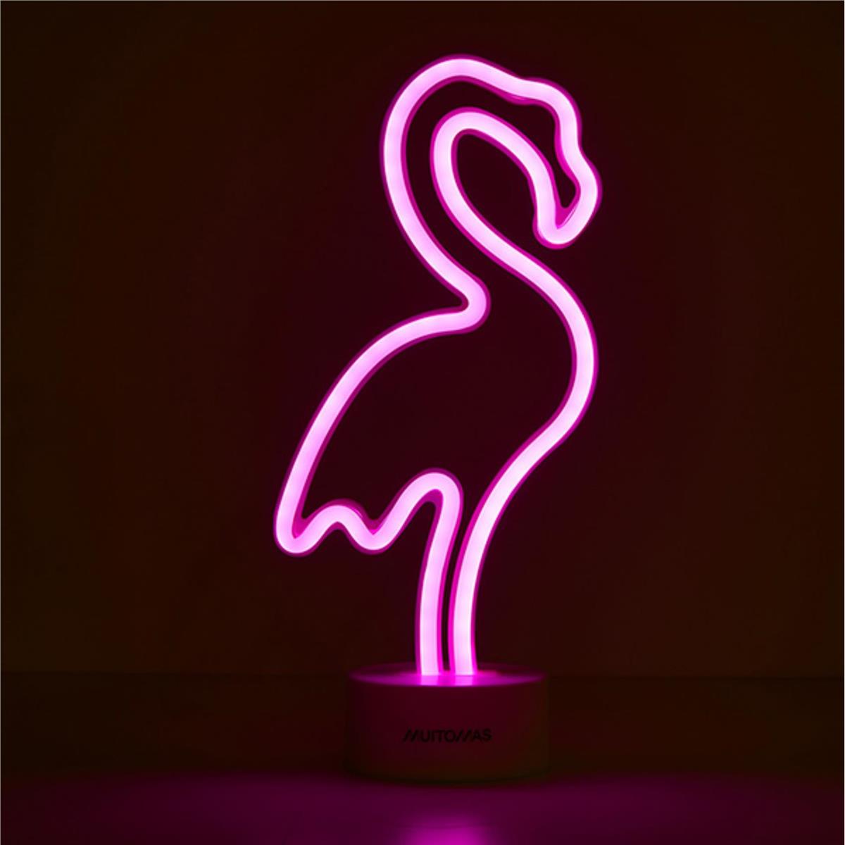 Dai vita agli angoli noiosi e guarda casa tua con una luce diversa. Lampada neon da tavolo a forma di saetta, fenicottero o cactus, dai colori brillanti.