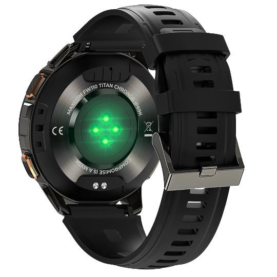 Maxcom FW110 Titan Chronos è stato progettato con attenzione ad ogni dettaglio. L'alloggiamento in metallo con bottoni di design garantisce durata e un aspetto elegante. Un solido bracciale in acciaio spazzolato massiccio con finitura opaca e bordi smussati aggiunge carattere e garantisce il comfort di indossare lo smartwatch tutto il giorno.