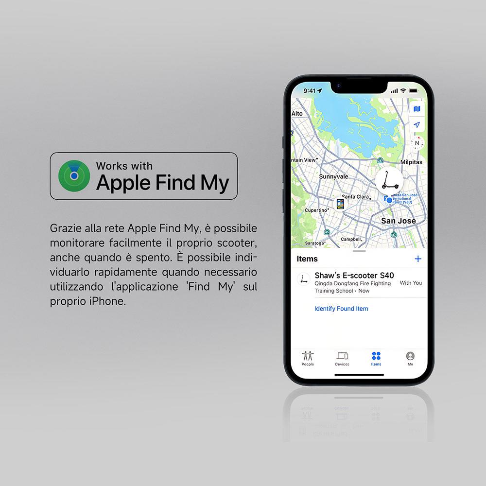 Apple Find My: Sfruttando la rete Apple Find My, puoi facilmente localizzare il tuo scooter, anche quando è offline. Accedi semplicemente all'app per individuarne rapidamente la posizione quando necessario.
