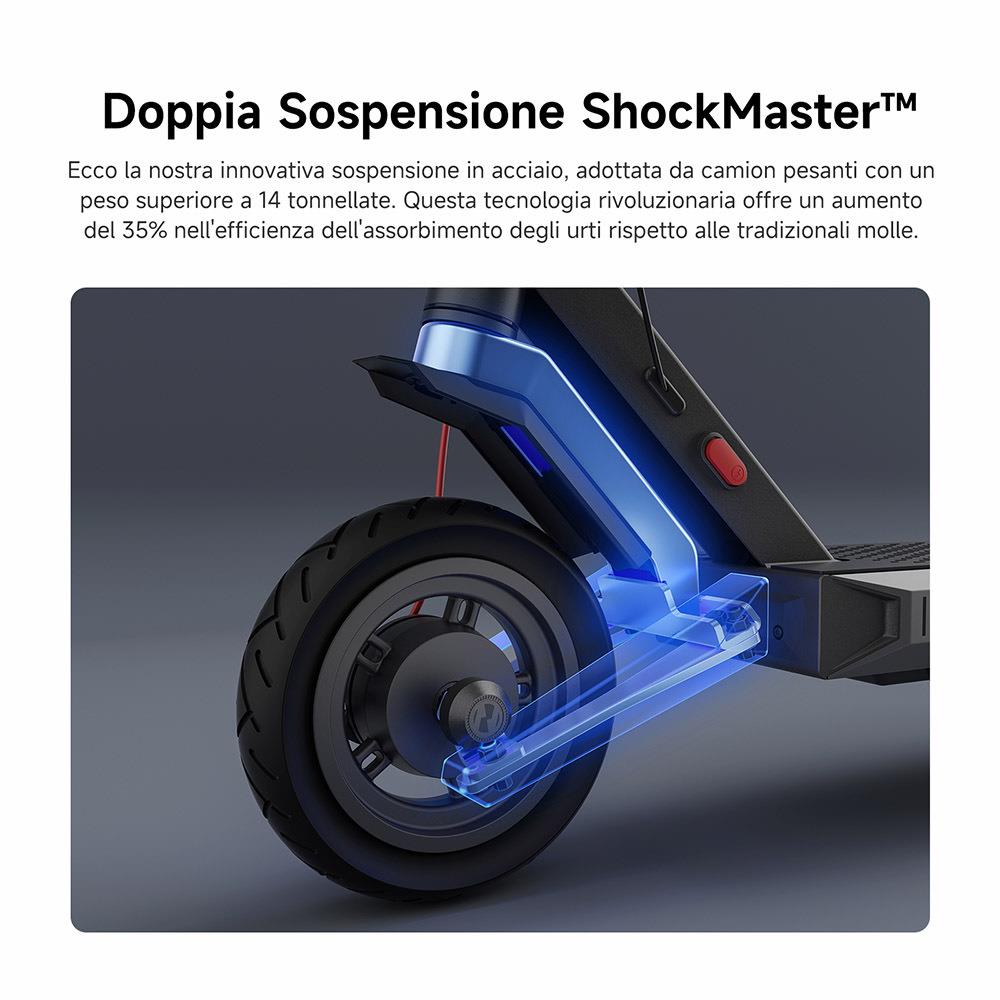 Gomma 10 Pollici Tubeless: Pneumatici più grandi migliorano l'assorbimento degli urti e la stabilità, ora ancora più resistenti con una resistenza superiore alle forature di alto livello.