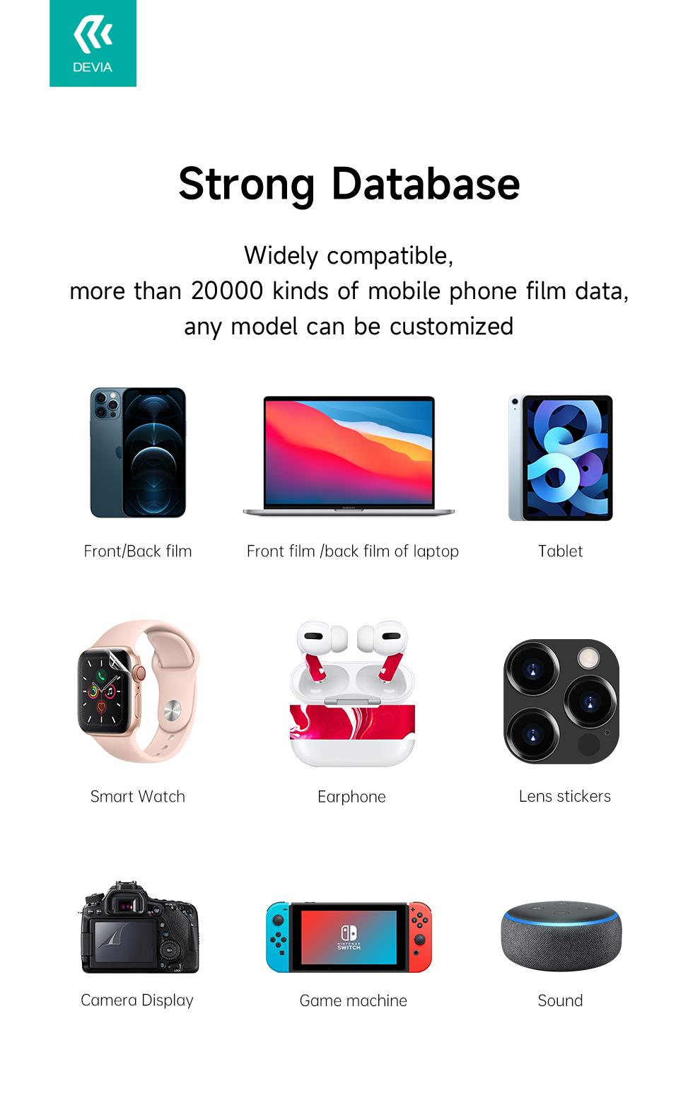 Peso: 8 kg Componenti: 5 pellicole frontali per telefono, 5 pellicole antiriflesso per telefono, 2 gratta e vinci (per telefono e iPad), 20 pezzi di tessuto per la pulizia, 1 tappetino antiscivolo,