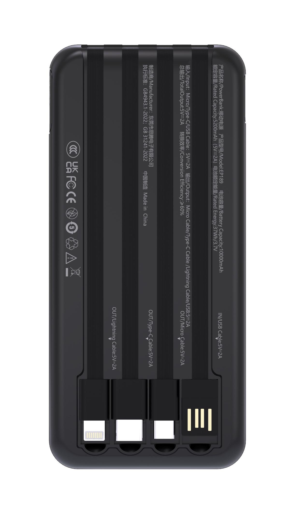 POWER BANK 10.000MAH C/4 CAVI C/DISPLAY BLACK