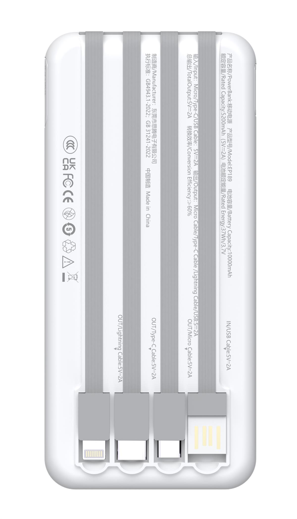 POWER BANK 10.000MAH C/4 CAVI C/DISPLAY WHITE