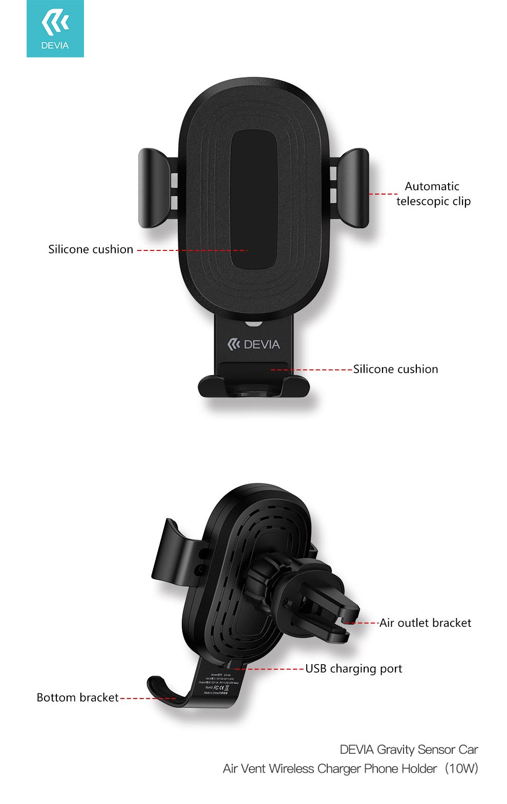 SUPPORTO AUTO BOCCHETTA WIRELESS MAGNETIC 10W BLACK