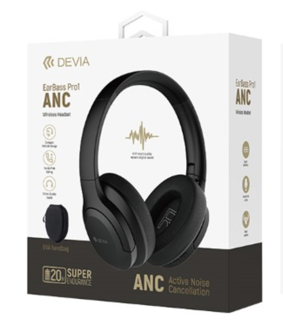 Cuffie con ANC EarBass Wireless Devia Pro 1 con Bassi Profondi.