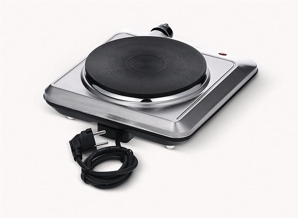Doppia piastra con 2 anelli riscaldanti: diametro 15 cm con circa 1.000 watt e diametro 18 cm con circa 1.500 watt