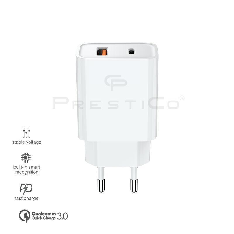 CARICA RETE PD 20W 1TYPE-C + 1USB WHITE