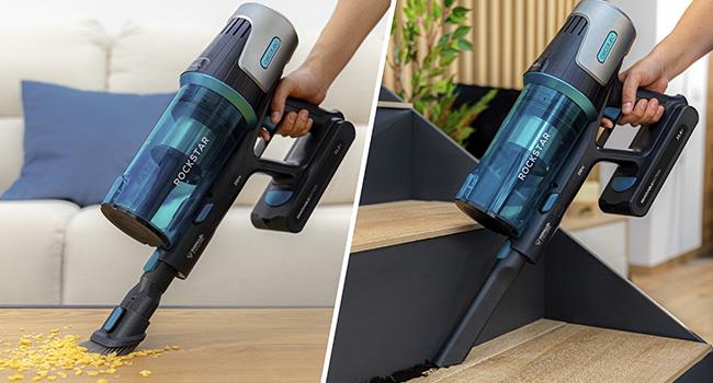 Aspirapolvere senza filo con 215 Watt di potenza totale, 45 minuti di autonomia in modalità ECO.
