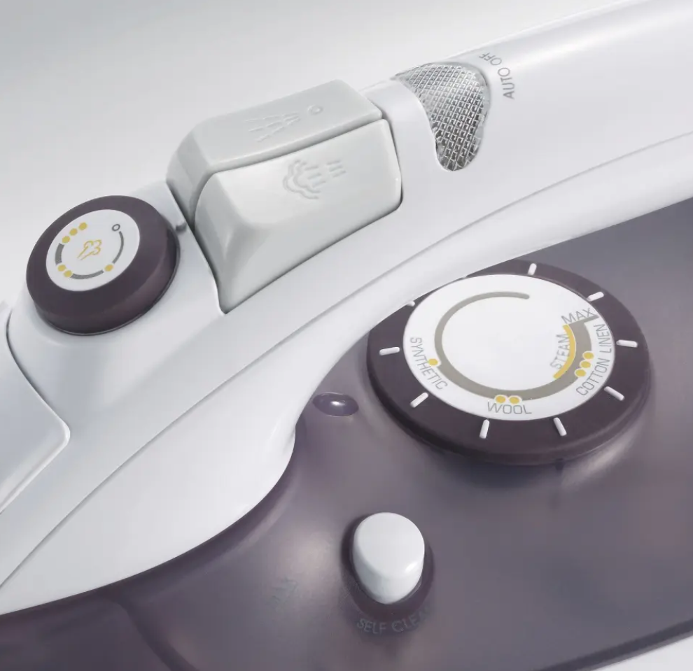 Ferro da stiro a vapore, Potenza 2.500 W, capacità serbatoio 225 ml, piastra in ceramica, stiratura vapore/ secco, regolazione vapore sino a 70 g/ min, stiratura verticale, spegnimento automatico, funzione di spruzzo doppio, sistema anticalcare, funzione antigoccia, sistema autopulente, termostato regolabile, spia temperatura, spia "pronto", indicatore del livello di acqua, cavo di alimentazione girevole, vano raccoglicavo.