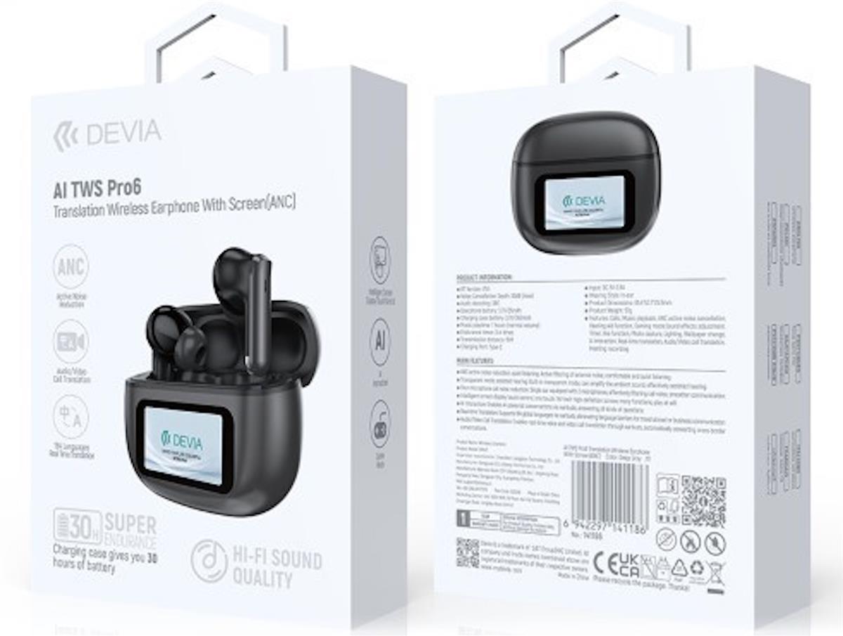DEVIA – AI TWS Pro6 Auricolari Wireless con Traduzione e Display (ANC) – Modello EM421