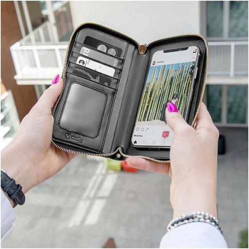 Venere è la custodia portafoglio effetto saffiano con chiusura a zip che ti permette di avere sempre a portata di mano carte di credito, contanti, documenti e il tuo smartphone! Venere ti permette di mantenere il telefono sempre al sicuro all’interno della pochette grazie all’innovativo sistema di fissaggio magnetico integrato che assicura una tenuta extra forte. Ti basterà applicare la placca metallica inclusa in confezione sul retro del device o all’interno della cover per avere lo smartphone al sicuro e sempre pronto all’uso. Scegli se utilizzare Venere con il laccio da polso o con la pratica tracolla removibile incluse in confezione e completa i tuoi outfit di ogni giorno!