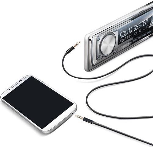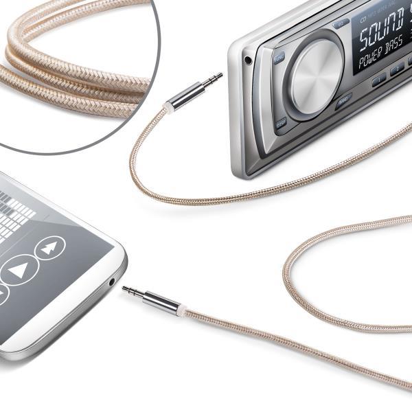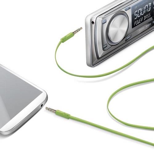 Ascolta la musica del tuo smartphone in auto! Cavo audio stereo maschio/maschio per il trasferimento del segnale audio da smartphone, tablet o lettori MP3 a periferiche esterne come autoradio, docking station e amplificatori dotati di ingresso AUX. Cavo piatto anti-aggrovigliamento con doppio jack 3.5 mm.
