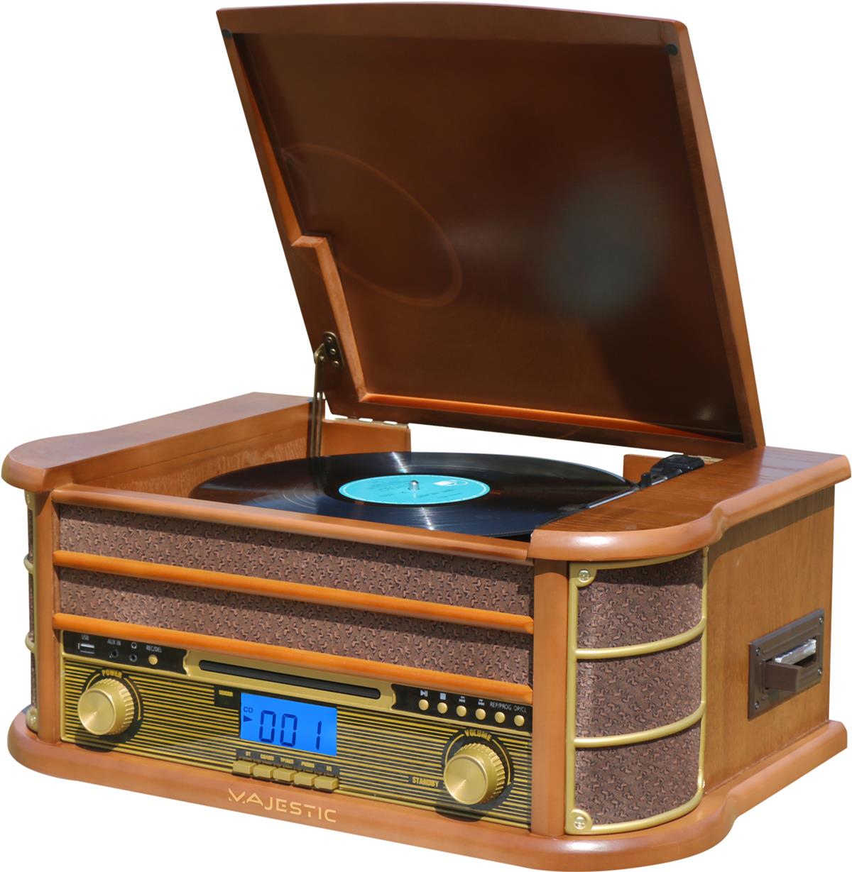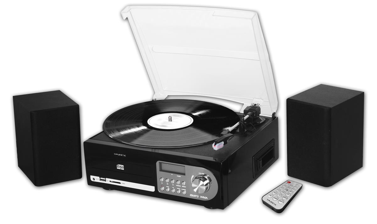 Giradischi con caricamento disco in vinile dall’alto Versione Bluetooth 4.1 Registrazione su dispositivo USB (in formato MP3) da Giradischi/CD/Cassetta/Bluetooth/Aux Riproduzione musica in formato MP3, WMA da dispositivo USB Lettore CD compatibile con CD, CD-R, CD-RW, MP3, WMA Ascolto disco in vinile a tre velocita` (33/45/78 giri) Adattatore per dischi 45 giri incluso Display LCD Radio FM Stereo PLL Radio DAB+: banda III (frequenza 174.928-239.200MHz) Preselezione stazioni radio: 20 (FM) - 20 (DAB) Line-out per il collegamento ad un amplificatore esterno o a casse amplificate Line-In da 3.5 mm Antenna telescopica Cassetta con funzione Auto-Stop Presa cuffie stereo (cuffie non incluse) Altoparlanti incorporati Telecomando in dotazione (1 batteria CR2025 a cella inclusa) Alimentazione AC/DC AC 100/240V – 50/60Hz DC 12V (1A) (adattatore incluso) Dimensioni: 48 (L) x 33,2 (P) x 22 (H) cm Peso: 6,20 Kg Colore: WD Conf: 1 pz