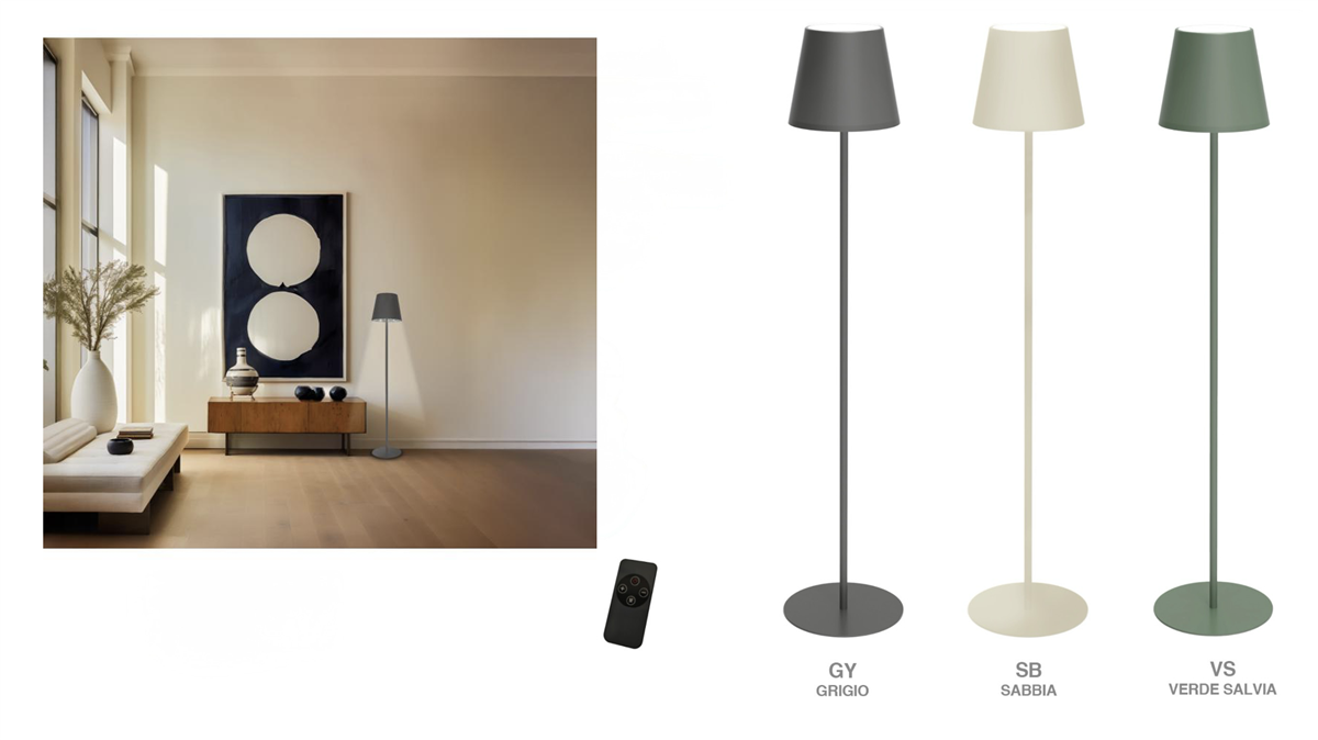 LAMPADA LED RICARICABILE LUMINOSITÀ REGOLABILE ADATTA AD AMBIENTI INTERNI ED ESTERNI (PROTEZIONE IP54) Lampada LED con luminosità regolabile Comando touch per Accensione/Spegnimento/Regolazione Luminosità regolabile (fino a 600 lm) Potenza: 5W max Tre tonalità di luce selezionabili: calda (3000K), naturale (4000K), fredda (5000K) Utilizzabile sia in ambienti interni che esterni (protezione IP54) Autonomia: da 9 a 45 ore a seconda della luminosità Batteria ricaricabile al litio integrata da 3,7V / 10000mAh Cavo per la ricarica della batteria in dotazione (caricabatterie non incluso) Telecomando in dotazione Base antiscivolo per una maggiore stabilità Struttura modulabile con tre altezze diverse Dimensioni: Testa della lampada: Parte superiore: 15 cm (Ø) Parte inferiore: 21,7 cm (Ø), Altezza: 18.2 cm Base: 23 cm (Ø) Altezza: 61 cm – 104 cm – 147 cm Peso: 2,68 kg Colori: GY – SB – VS
