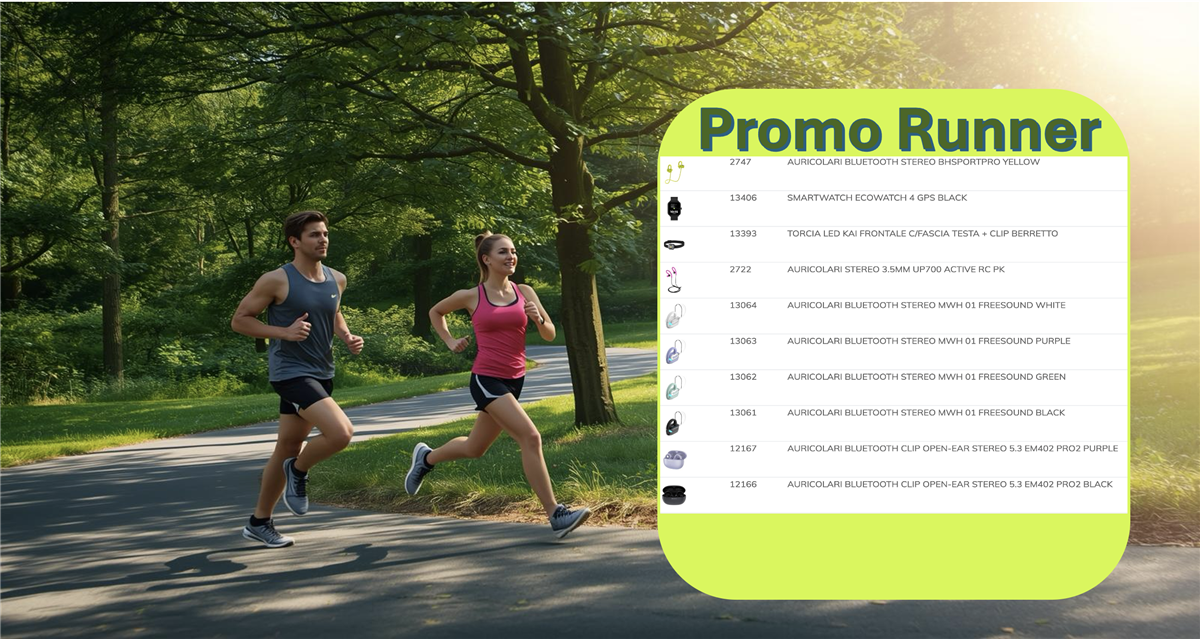 PROMO PACK COMPOSTO DA 10 REFERENZE: 1 COD. 2747 CELLY BLUETOOTH BHSPORT YELLOW 1 COD. 13406 MAXCOM SMARTWATCH ECO 4 GPS 1 COD. 13393 MAJESTIC TORCIA FASCIA TESTA 1 COD. 2722 CELLY AURICOLARI RUNNER JACK 1 COD. 13064 MAXCOM BLUETOOTH WHITE 1 COD. 13063 MAXCOM BLUETOOTH PURPLE 1 COD. 13062 MAXCOM BLUETOOTH GREEN 1 COD. 13061 MAXCOM BLUETOOTH BLACK 1 COD. 12167 DEVIA BLUETOOTH EM402 PURPLE 1 COD. 12166 DEVIA BLUETOOTH EM402 BLACK